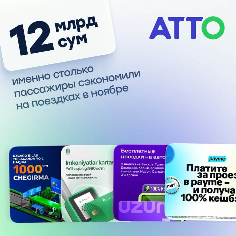 В ноябре этого года пассажиры общественного транспорта, благодаря активной деятельности АТТО, смогли сэкономить рекордные 12 миллиардов сумов.